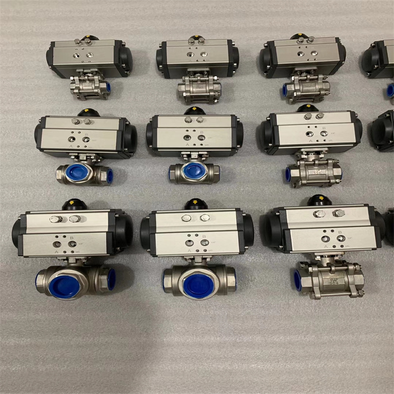 气动丝扣球阀产品概述Q611F气动丝扣球阀是由双(单)作用气动活塞式执行器和内螺纹丝扣球阀组成。其阀体可分为整体式、二片式、三片式。阀座采用弹性密封结构,密封可靠,启闭轻松。阀杆采用有倒密封的下装式结构,阀腔异常升压时,阀杆不会被冲击。气动活塞式执行器采用低摩擦材料做成轴承套,缸体内外表面经硬质阳极氧化防腐处理,大大提高了气缸的使用寿命。本产品使用性能稳定,广泛的用于石化、冶金、电力、轻工、医药等工业部门。