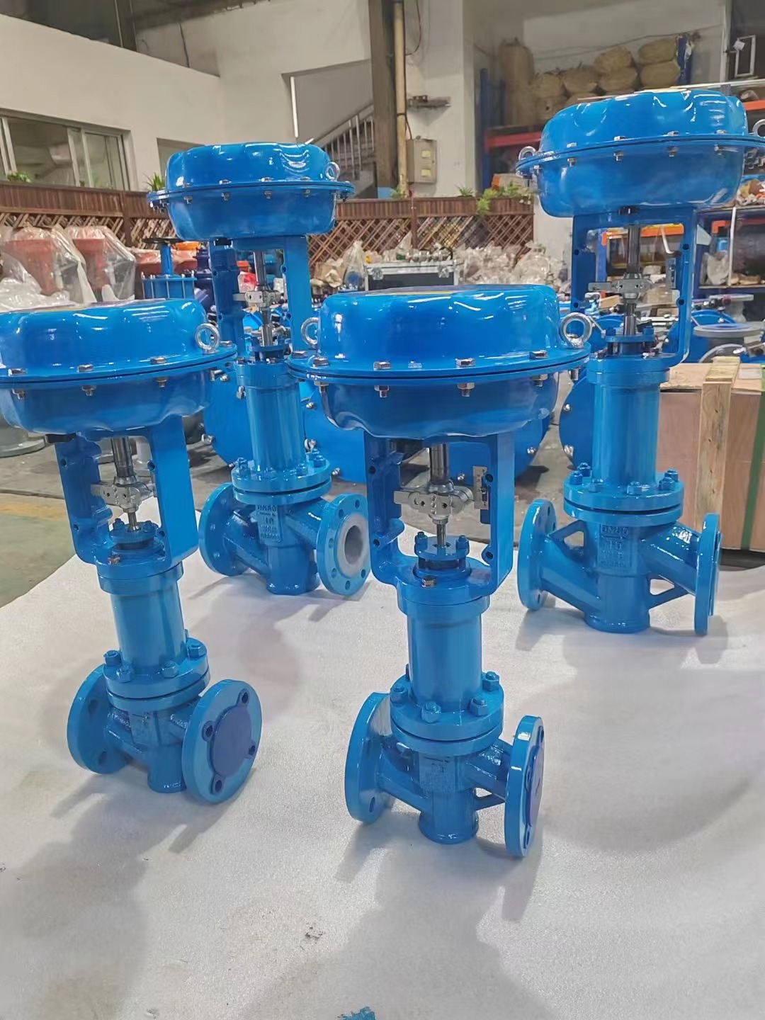 精小型气动衬氟调节阀采用顶部导向结构,配用多弹簧执行机构,具有结构紧凑、重量轻、动作灵敏、流体通道呈S流线型、压降损失小、阀容量大、流量特性精确、拆装方便等优点。广泛应用于精确控制气体、液体等介质的工艺参数对压力、流量、温度、液位保持在给定值。特别适用于允许泄漏量小且阀前后压差不大的场合。本系列产品有标准型、调节切断型。产品公称压力等级有PN0.6、1.0、1.6、2.5、class 150LB;公称通径范围DN20~300;使用温度由-20℃~+200℃范围内多种档次;泄漏等级VI级,流量特性为线性或等百分比。